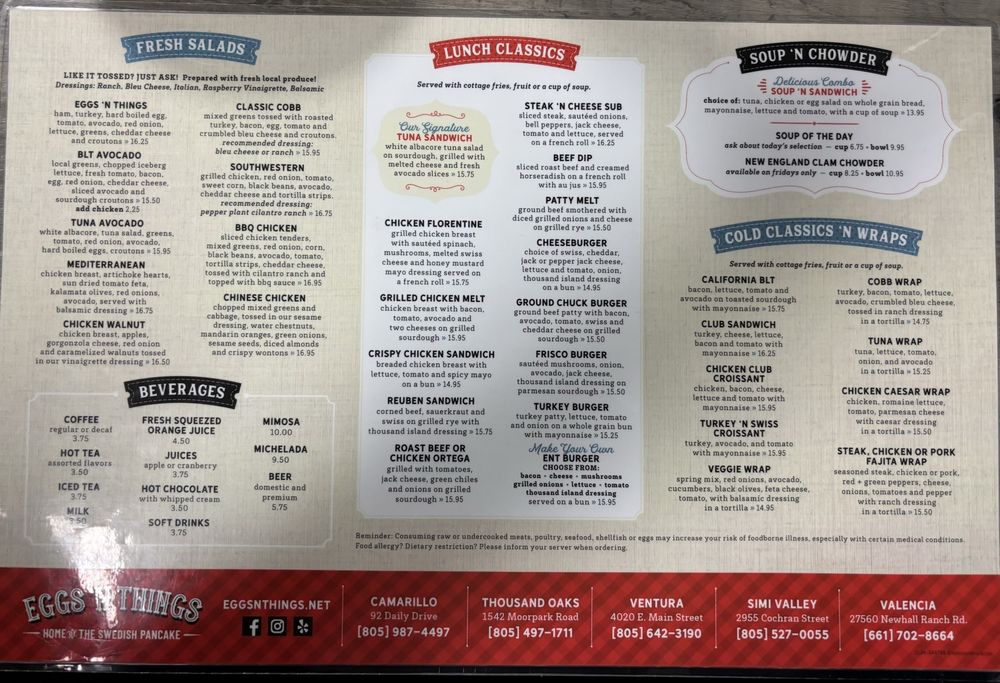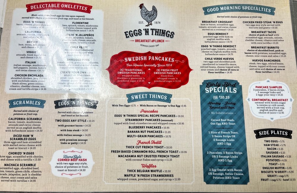 Welcome to Eggs 'n' Things Valencia, a delightful destination for breakfast and brunch enthusiasts located at 27560 Newhall Ranch Rd, Santa Clarita, CA. This popular spot specializes in a diverse menu featuring mouthwatering sandwiches, ranging from comforting classics to innovative options.